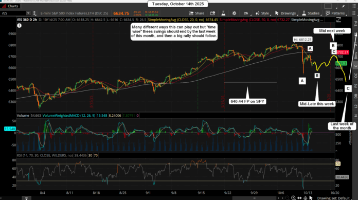 I don't think it's straight up from here of course, as we should see a retest of the lows, maybe a couple of retests? I think we will see the first retest later this week, and if it breaks we'll probably flush on down to the 6400's, and ironically there's a FP on the SPY of 640.44, which could be the low? However, this coming first retest may hold as well, and just put in a higher low or double bottom.