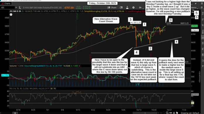 From what I can tell yesterdays rally was a tiny C wave up inside a small wave 2, further inside a medium wave C down, inside a large wave 4 down. That's a mouth full of course, but if I'm right we'll see the start of a nasty drop today, which will be a small 3 down inside a medium C, inside large wave 4 down. It should complete by early-mid next week with a slightly lower low (50-100 points) then the October 10th low. Nothing more to add so I'll end it here.
