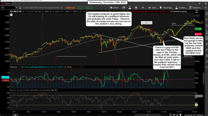 It would be the wave 2 pullback as well with the rally up from that Friday low to the high from it being the wave 1... which sets up the wave 3 up into next week for OPEX. I have to think we'll see a new all time high easily if the pullback is only to fill that gap, so 7000 is very possible. The Bearish case would require some kind of new event to get such a large drop to happen in the next few days. I cannot predict that, so I won't even try. I'm just going to be focused on the date window of Thursday or Friday, and whatever low it is should be the best opportunity to get long for the wave 3 up.