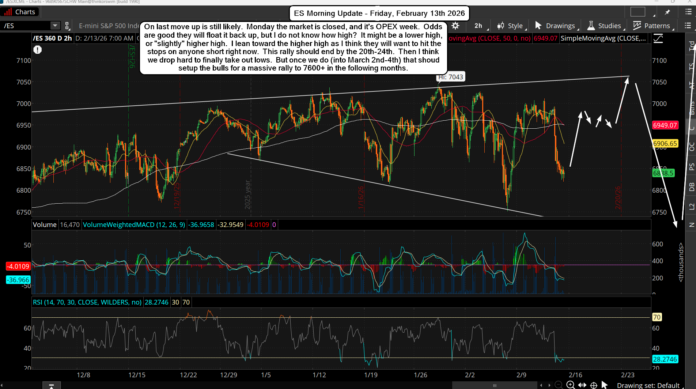 It will be super hard to get through it, but it's also pulling the market up to it. Possibly we see chop next week and one last "hurrah" move up to finally hit that 700 magnet. They won't make this easy or obvious. Cycles say next week is bullish, but with that wall of calls around the 700 level there's not much left on the upside... if it gets there at all? Most likely we chop with only small pullbacks, which get bought up fast, and then some last move up between the 20th-24th to hit the 700 SPY level. Once all those calls are sold that magnet will go away and then we can see the next move down happen into around March 2nd-4th, where we could (should) see "at least" that 660.08 FP on the SPY.