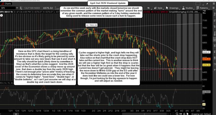 The low is most likely in now. The March 30th low should have ended my Extra Tiny Wave 5, inside Tiny Wave 5, inside Small Wave 5, inside Medium Wave C, inside Large Wave 4... whew, what a mouthful (LOL)! I posted a chart of the wave count on X Monday Evening showing this wave count, and suggesting that we drop to the 627.03 FP on the SPY to finish all those waves. But that's looking less likely now as that Extra Tiny Wave 5 likely ended that day at the 6353 low on the ES. Below is that chart again...