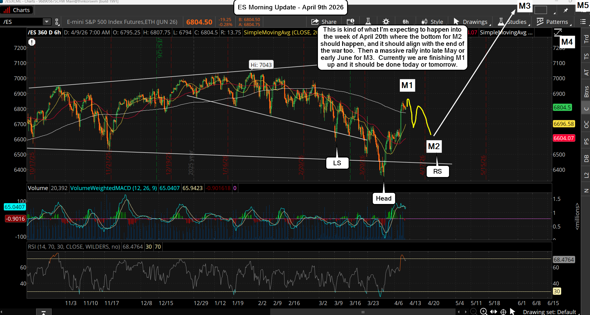 Back to the short term... after Medium Wave 1 ends (in a few days at most), Medium Wave 2 should be an ABC that drags out into late April (with the 19th-24th as the ideal zone) where the end of that move happens, and so should the war in Iran. This will be the period that frustrates the most traders as Medium Wave 2 will not take out the current lows but will tease everyone with fast drops that get bought up but make you think it's going lower.