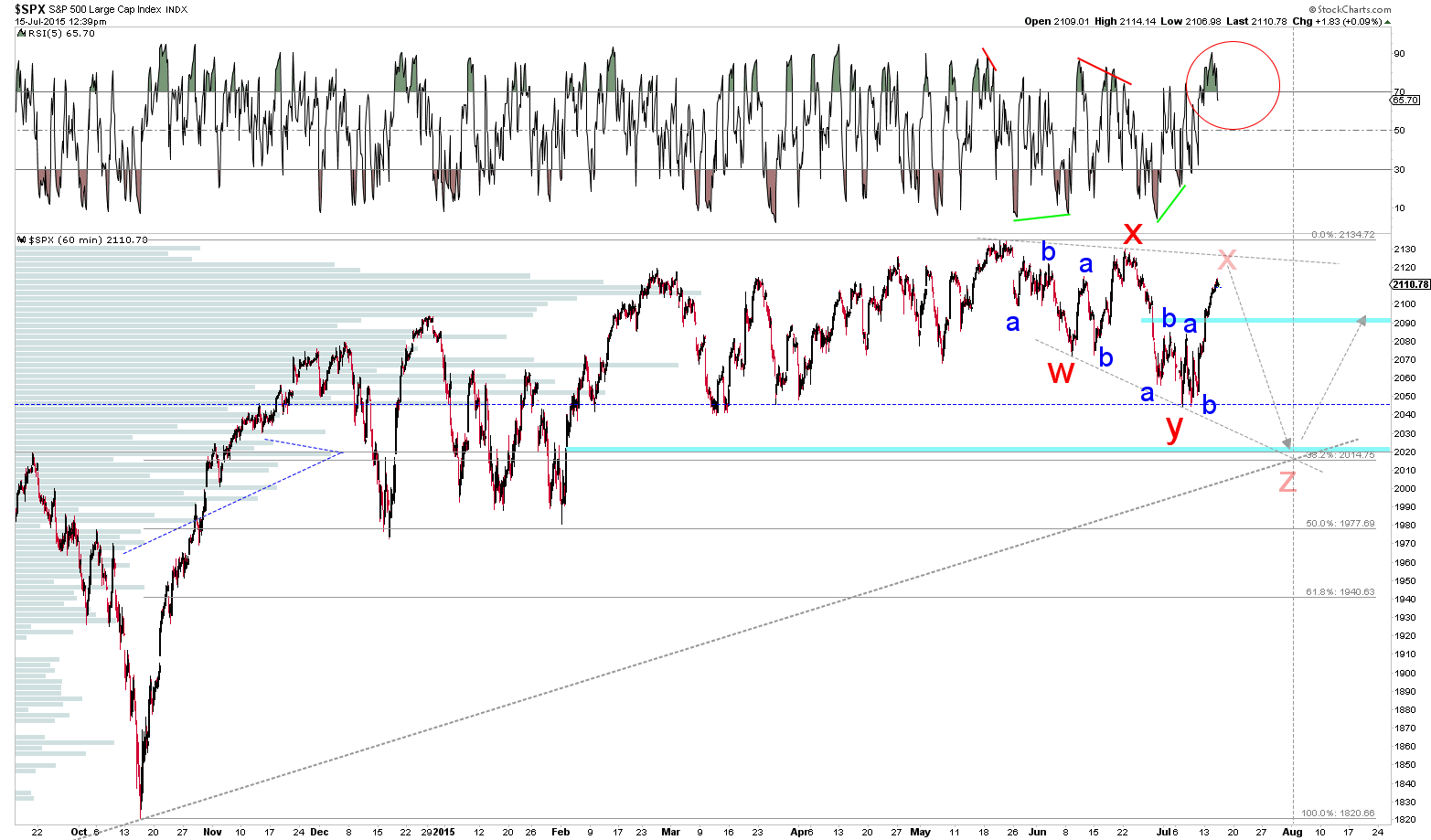 So a lower high (like on July 7th, 2011) could happen again (like this Thursday of Friday) and then a drop next week, bounce back up some the last week of July and fall off a cliff starting the first week of August could be the plan?